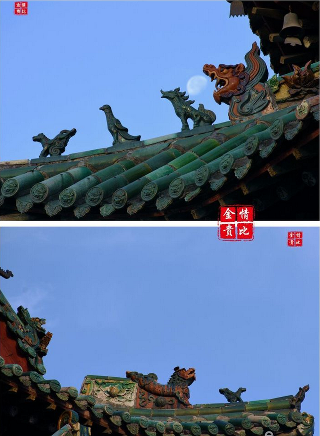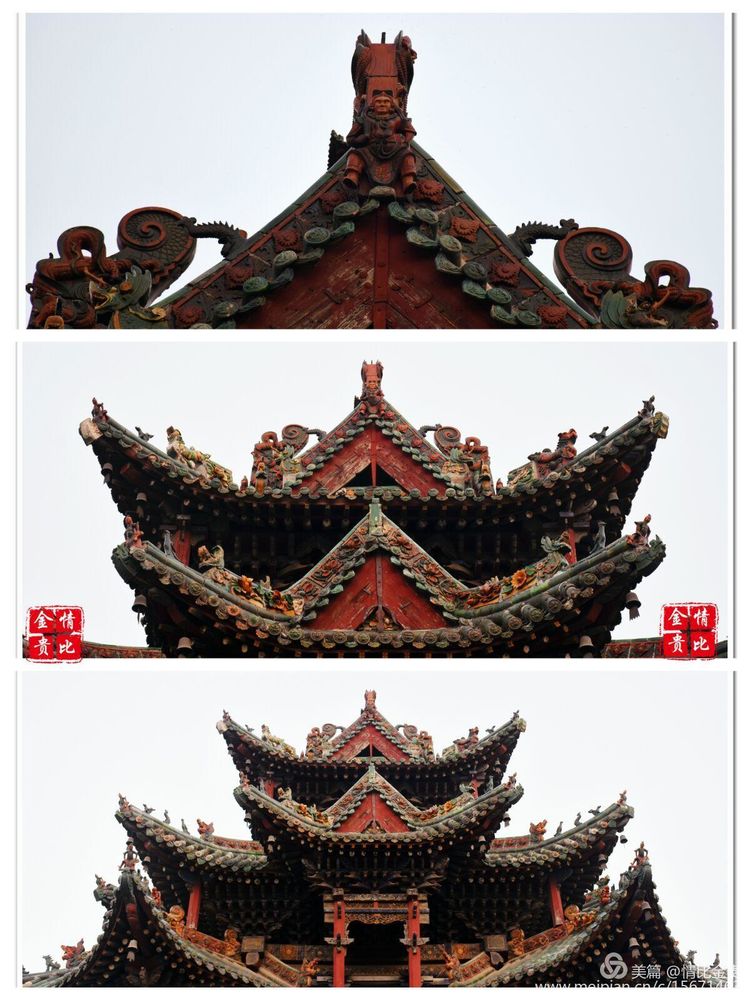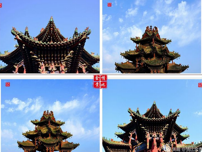 望母樓為樓閣與牌縷混合式建筑,坐北朝南。此樓純系木材構(gòu)建,三重檐十字歇山頂,上覆黃綠相間琉璃瓦,全樓三層十一小樓。她既有江南樓閣精巧纖繡、玲瓏剔透之俊秀,又有北方古建筑的大氣敦厚、雄渾巍峨之壯觀。其構(gòu)思之精,工藝之巧,造形之美,可稱三絕,是具有藝術(shù)價值的古建筑,是曲沃古老文明的象征性建筑。