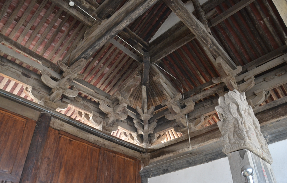 大悲院獻(xiàn)殿面闊三間,進(jìn)深三間,梁架三椽柎對三椽柎,殿內(nèi)用中柱,單檐歇山灰瓦頂。柱頭,補(bǔ)間斗拱五鋪?zhàn)?,琉璃脊剎.吻獸,整體設(shè)計科學(xué),結(jié)構(gòu)嚴(yán)謹(jǐn),對于研究我國宋金時期建筑的結(jié)構(gòu)法式具有很高的科學(xué)價值。